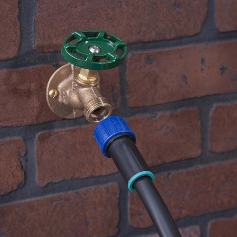 Connect 0.710 in. distribution tubing or dripline to your water source; built-in swivel allows you to add or remove the adapter without twisting and potentially kinking the tubing; Connect to water source, such as a hose bibb or garden hose