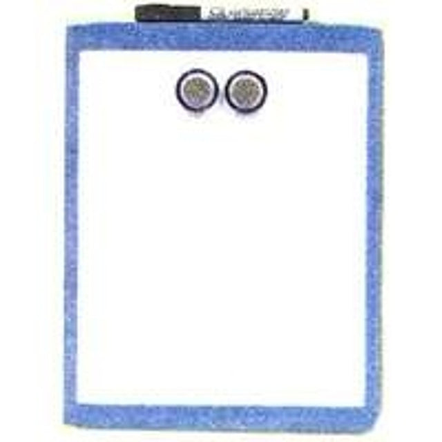 Dry-erase surface doubles as a magnetic bulletin board. Assorted colors.