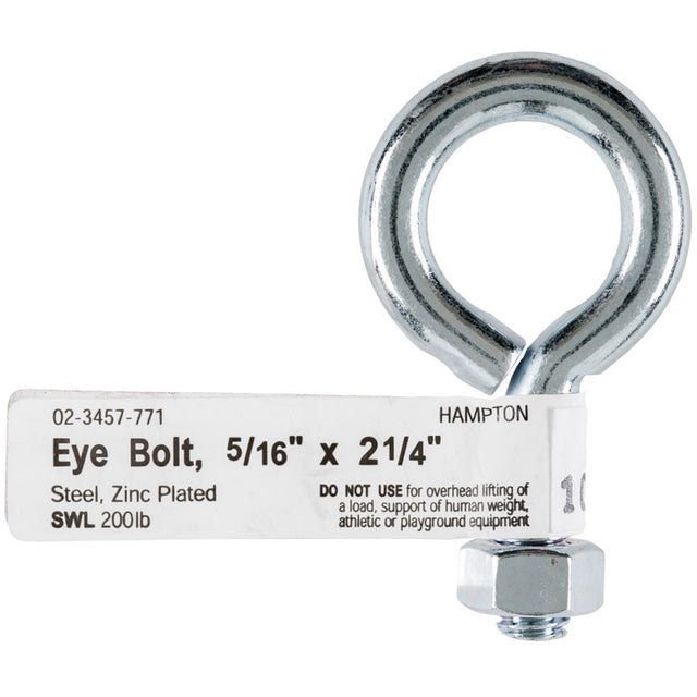 Hampton 5/16 in. X 2-1/4 in. L Zinc-Plated Steel Eyebolt Nut Included, Pack of 10