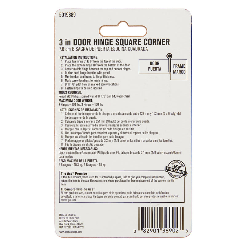 Ace residential hinges are a great choice for residential, commercial, window, furniture and a variety of other applications.1 PACK