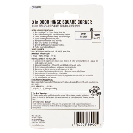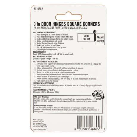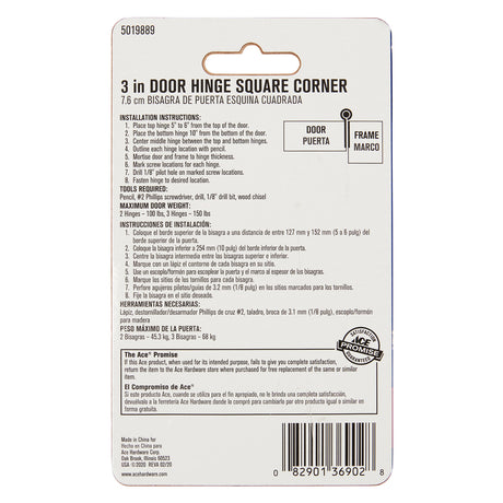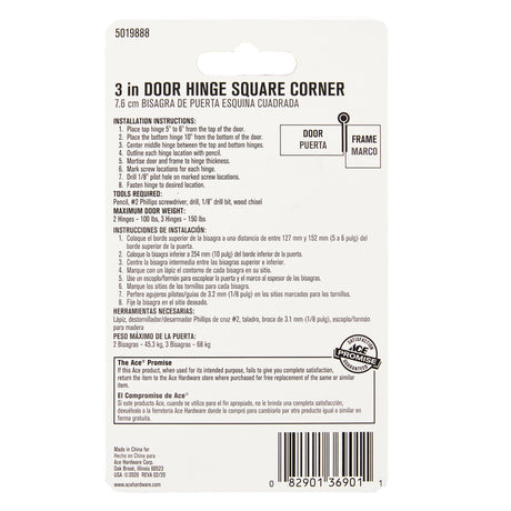 Ace 3 in. L White Residential Door Hinge 1 pk