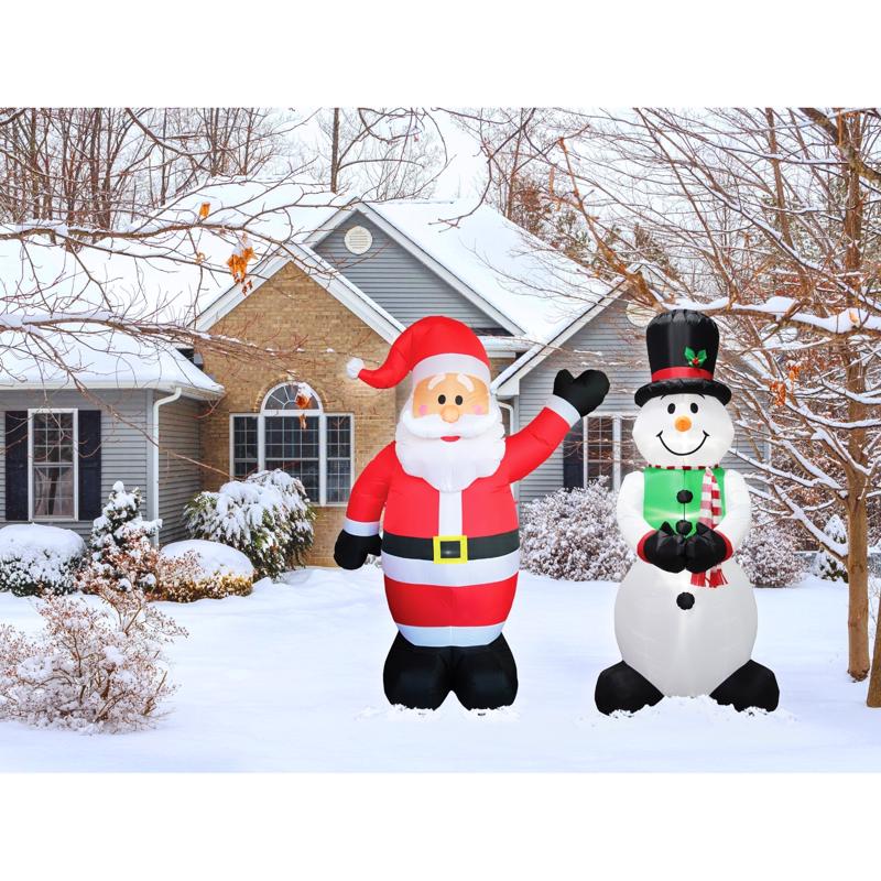 This Santa Inflatable is a great way to decorate your yard for the Holiday season. Just plug it in, stake it down and watch the magic unfold. Display this large Christmas decoration as a stand alone or combine it with other air blown inflatables to create a custom scene. Includes everything needed for easy outdoor setup.
