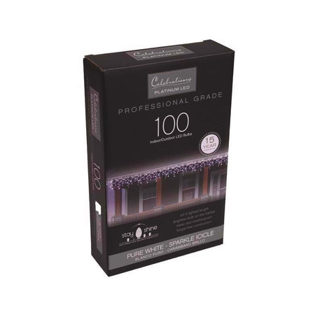 Celebrations Platinum LED T5 Pure White 100 ct Icicle Christmas Lights 9.5 ft.
