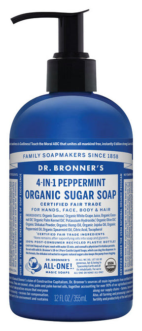 • Dr. Bronners Organic Sugar Soap is made for washing everything from your hands to your hair.