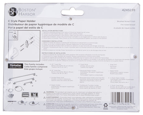 Boston Harbor 3655C-07-07-SOU C Style Paper Holder, Steel Ring/Zinc, Brushed Nickel