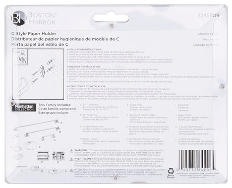 Boston Harbor 3655C-26-07-SOU C-Ring Paper Holder, Steel Ring/Zinc, Chrome