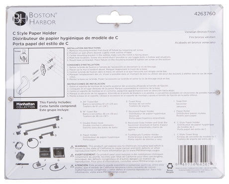 Boston Harbor 3655C-35-07-SOU C-Ring Paper Holder, Steel Ring/Zinc, Venetian Bronze