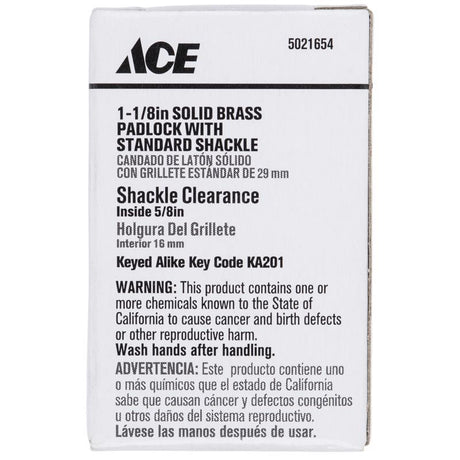 Ace 1-1/16 in. H X 1-1/8 in. W X 7/16 in. L Brass Double Locking Padlock