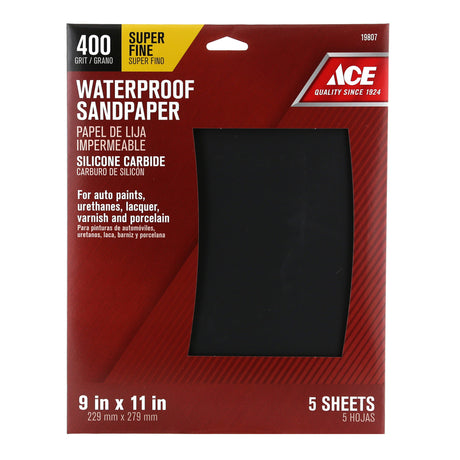 Ace 11 in. L X 9 in. W 400 Grit Silicon Carbide Waterproof Sandpaper 5 pk, Pack of 10