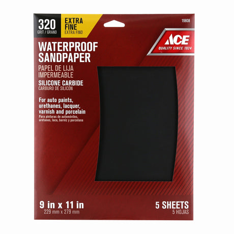 Ace 11 in. L X 9 in. W 320 Grit Silicon Carbide Waterproof Sandpaper 5 pk, Pack of 10