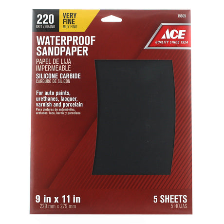 Ace 11 in. L X 9 in. W 220 Grit Silicon Carbide Waterproof Sandpaper 5 pk, Pack of 10