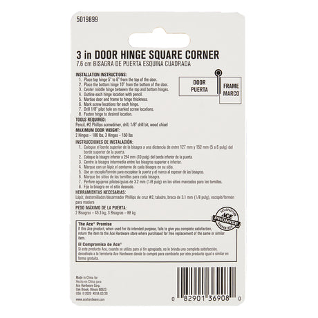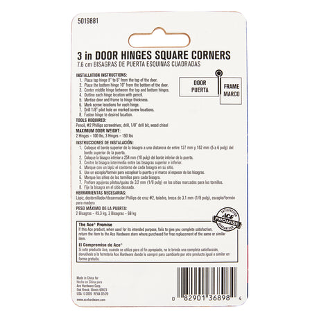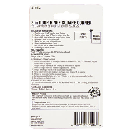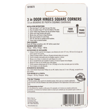 Ace 3 in. L Natural Weldable Door Hinge 1 pk, Pack of 10