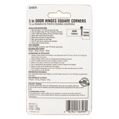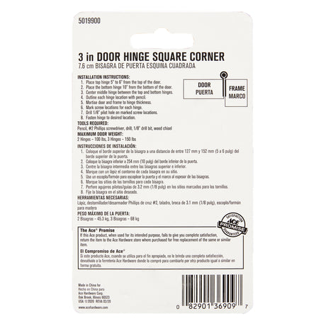 Ace 3 in. L Stainless Steel Door Hinge 1 pk