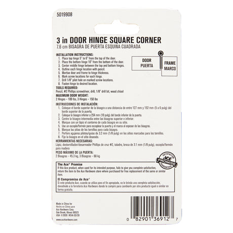 Ace 3 in. L Stainless Steel Residential Door Hinge 1 pk