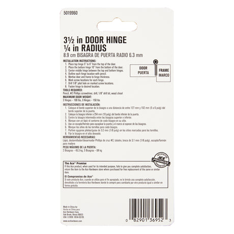 Ace 3-1/2 in. L Stainless Steel Residential Door Hinge 1 pk