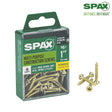The SPAX factor - for the craftsman that concentrates on the details, we work for you. For the pro that puts qualify first, we help you create stronger connections, enhance performance and improve results when your reputation is on the line. This high performance wood screw is not your average screw. While it is designed for wood applications it is also functional for other materials like masonry, drywall, plastic and up to 24ga steel. Masonry and concrete do require pre-drilling. It is made with carbon steel and coated for durability to fasten strongly and securely. U.S made SPAX is your trusted partner for your fastening needs. Do it Once, Do it Right with SPAX.