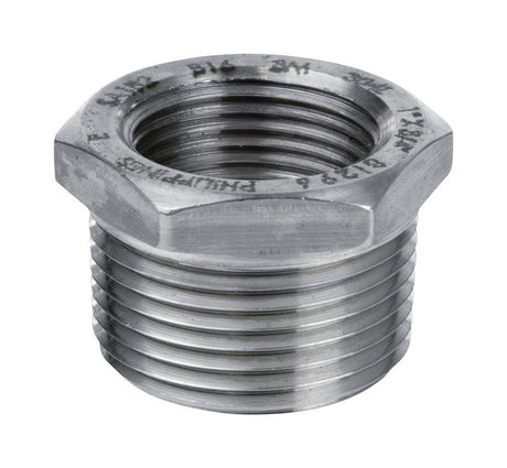 Smith-Cooper 1-1/2 in. MPT X 1-1/4 in. D FPT Stainless Steel Hex Bushing