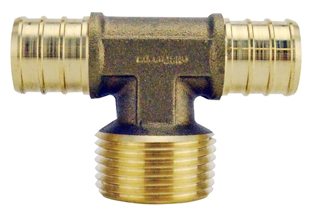 Apollo APXMT34 Pipe Tee, 3/4 in, Barb x MPT x Barb, Brass, 200 psi Pressure