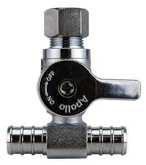Apollo PEX valves are designed to control water flow to plumbing fixtures with simple On/Off water flow control to faucets, toilets and home appliances. Controlling water flow at each fixture allows for maintenance and replacement of fixtures without the need to shut down the entire piping system. Designed for use with Apollo PEX crimp rings, stainless steel pinch clamps or stainless steel sleeves, various outlet connections allow for the use of supply lines with compression threaded ends. Apollo PEX ball valves are the best solution to add flow control or replace a valve in a potable or hydronic water heating PEX system. Apollo PEX ball valves are suitable for use in conjunction with stainless steel sleeves, stainless steel pinch clamps and copper crimp rings.