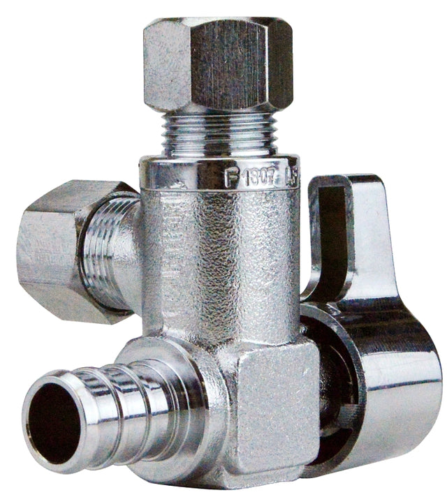 Apollo Valves APXVA123838C Dual Outlet Stop Valve, 1/2 x 3/8 in Connection, Barb x Compression, 200 psi Pressure