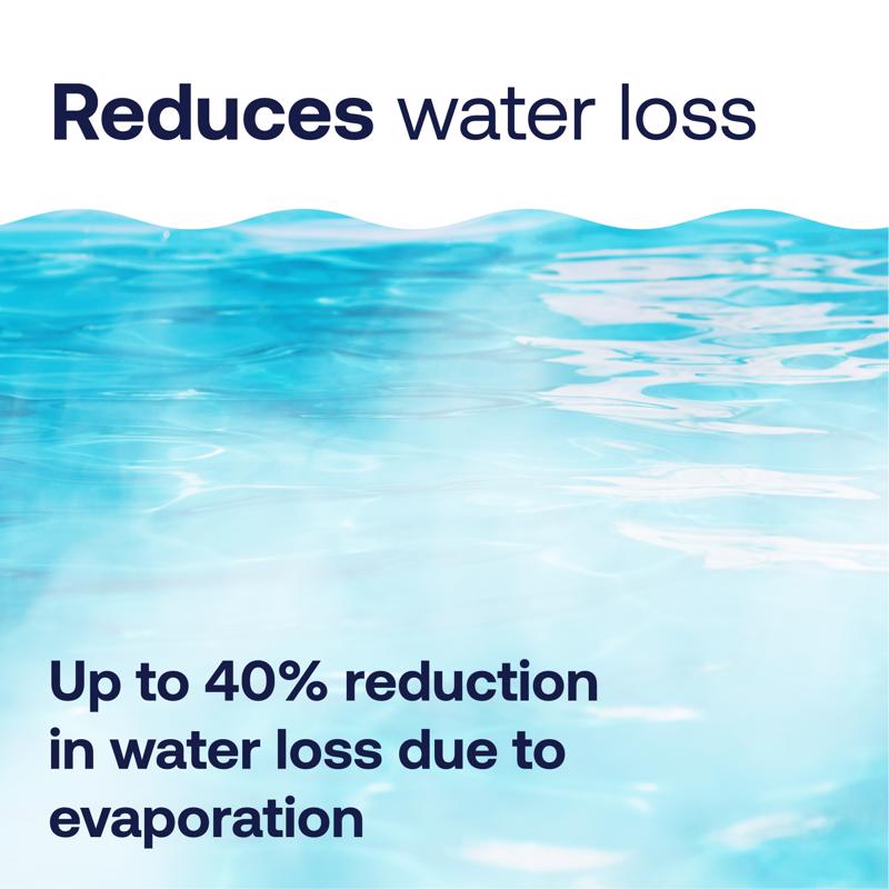 Forms a tough, invisible barrier that prevents heat loss and conserves water. Reduces heat loss by up to 40% due to evaporation. Replaces the need for an expensive solar pool cover/reel.