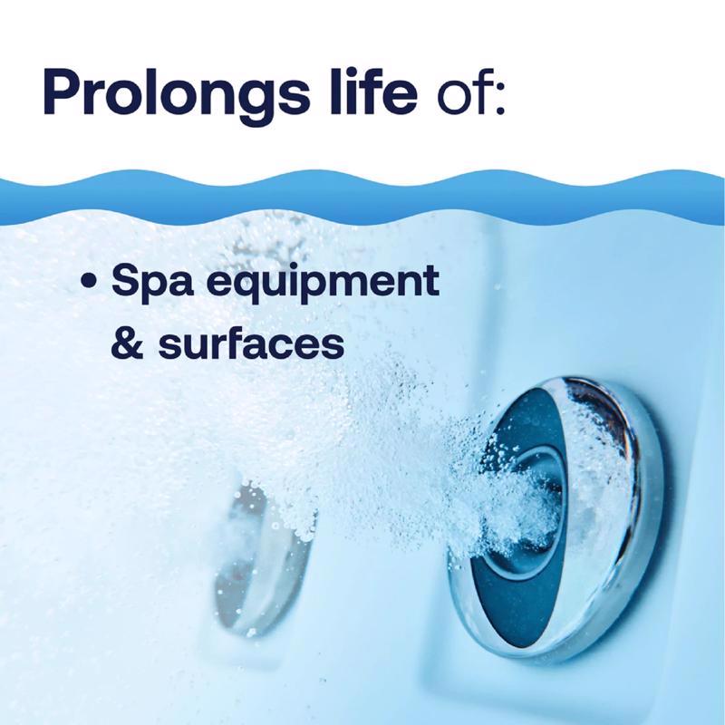 Prolongs the life of your spa Helps prevent damage to spa surfaces and equipment (pumps, filters and heaters).