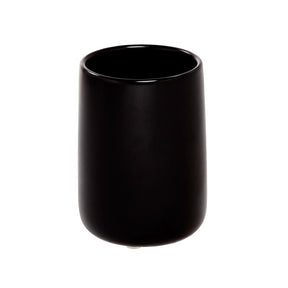 Circularity meets storage with the InterDesign Ceramic Tumbler Cup. This responsibly designed and multi-purpose cup is ideal for storing toothbrushes and toothpaste on bathroom countertops, organizing makeup brushes and applicators on vanities or for rinsing and drinking next to the sink. The open top design allows wet items to dry more efficiently after use while also keeping them easily accessible. The non-skid foam feet on the bottom of the cup keep it in place and prevent it from sliding on wet surfaces. This versatile organizer cup can be used in the office to hold items such as pens, pencils, highlighters, and other desk accessories as well. It can also be paired with other items in the Ceramic Earth Collection for an effortlessly coordinated and organized bathroom. The modern design with matte black finish matches a variety of decor styles, while the durable ceramic construction stands up to every day use and is easy to clean. This storage cup fits perfectly in compact spaces on countertops. InterDesign is investing in the future of our planet. We are working towards utilizing post-consumer recycled plastic for our plastic products and incorporating renewable materials. With InterDesign, you can live simply & sustainably every day. Packaging may vary as we reimagine more sustainable home organization.