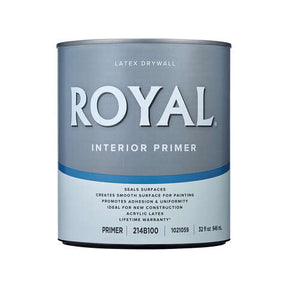 Royal Drywall Latex Primer seals surfaces to assure a uniform appearance of finish coats.