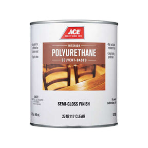 Ace Semi-Gloss Clear Solvent-Based Polyurethane Wood Finish 1 qt, Pack of 4