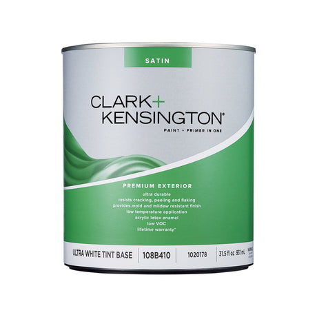 Clark+Kensington Satin Tint Base Ultra White Base Exterior Paint and Primer Exterior 1 qt, Pack of 4