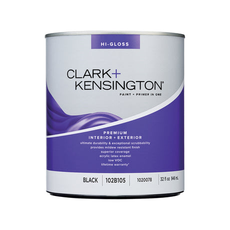 Clark+Kensington High-Gloss Black Premium Paint Exterior and Interior 1 qt, Pack of 4