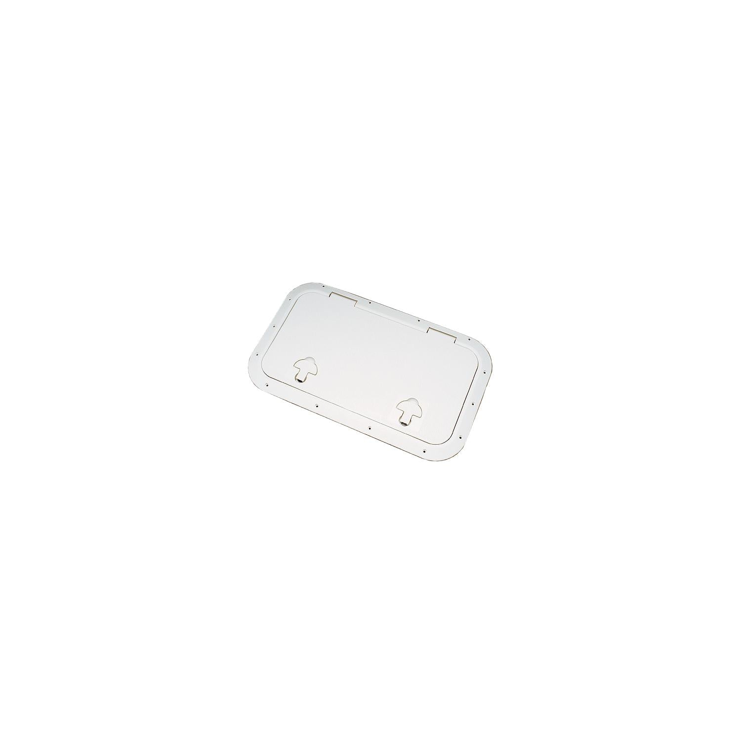 Flush mounting, molded low profile hatch is fully gasketed with UV stabilized resin and non-skid surface. Comes with "T" handles for easy operation and stainless steel hinge pins.