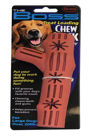 Pets will love the Boss Pet Treat Loading Chew Stick Dog Toy. Fill grooves with dog's spreadable treat or place solid treats in holes. Relieves boredom, exercises jaws and keeps teeth and gums clean! Made with premium natural rubber and puncture resistant.