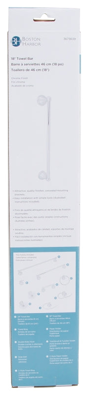 Boston Harbor L5018-26-103L Towel Bar, 18 in L Rod, Chrome, Surface