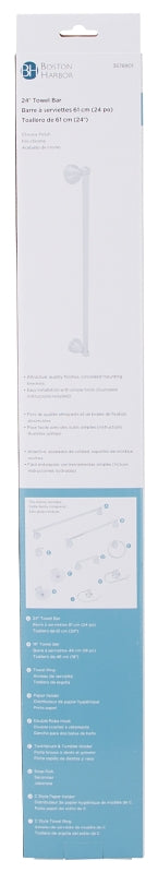 Boston Harbor L5024-26-103L Towel Bar, 24 in L Rod, Chrome, Surface