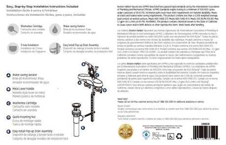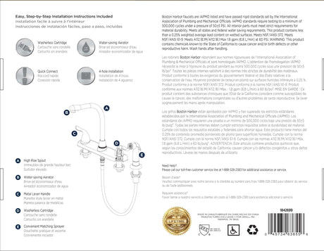 Boston Harbor FP4A0096NP Spring Pull-Down Kitchen Faucet, 1.8 gpm, 1-Handle, 1 or 3-Faucet Hole
