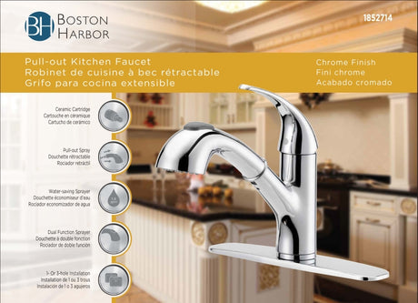 Boston Harbor FP4A0096CP Spring Pull-Down Kitchen Faucet, 1.8 gpm, 1-Handle, 1 or 3-Faucet Hole