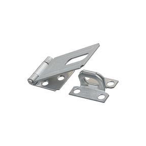National Hardware V30 Safety Hasp, Staple Type: Non-Swivel, Shackle Diameter: 0.44 in, Steel, Zinc, 3-1/4 in L, 1-1/2 in W, Material Thickness: 0.07, Mounting Hole Diameter: 0.28 in, Screw Mounting, Suitable for: Boxes, Cabinets, Doors, Trunks, Includes: Rigid Non-Swivel Staple