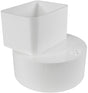 "Offset flush fit downspout adapter; used to connect rain gutter downspouts to underground sewer piping; fits over 4"" sewer pipe. Size: 2"" x 3"" x 4""."