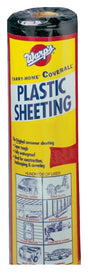 Super tough, fully waterproof plastic sheeting used by DIYers and contractors for large and small construction, landscaping or covering projects. Warp's shelf-pack, wrapped on a solid core, will sit upright on a shelf or horizontally in a bin with vertical design on front panel and horizontal on rear for flexibility in displaying. Consumer.