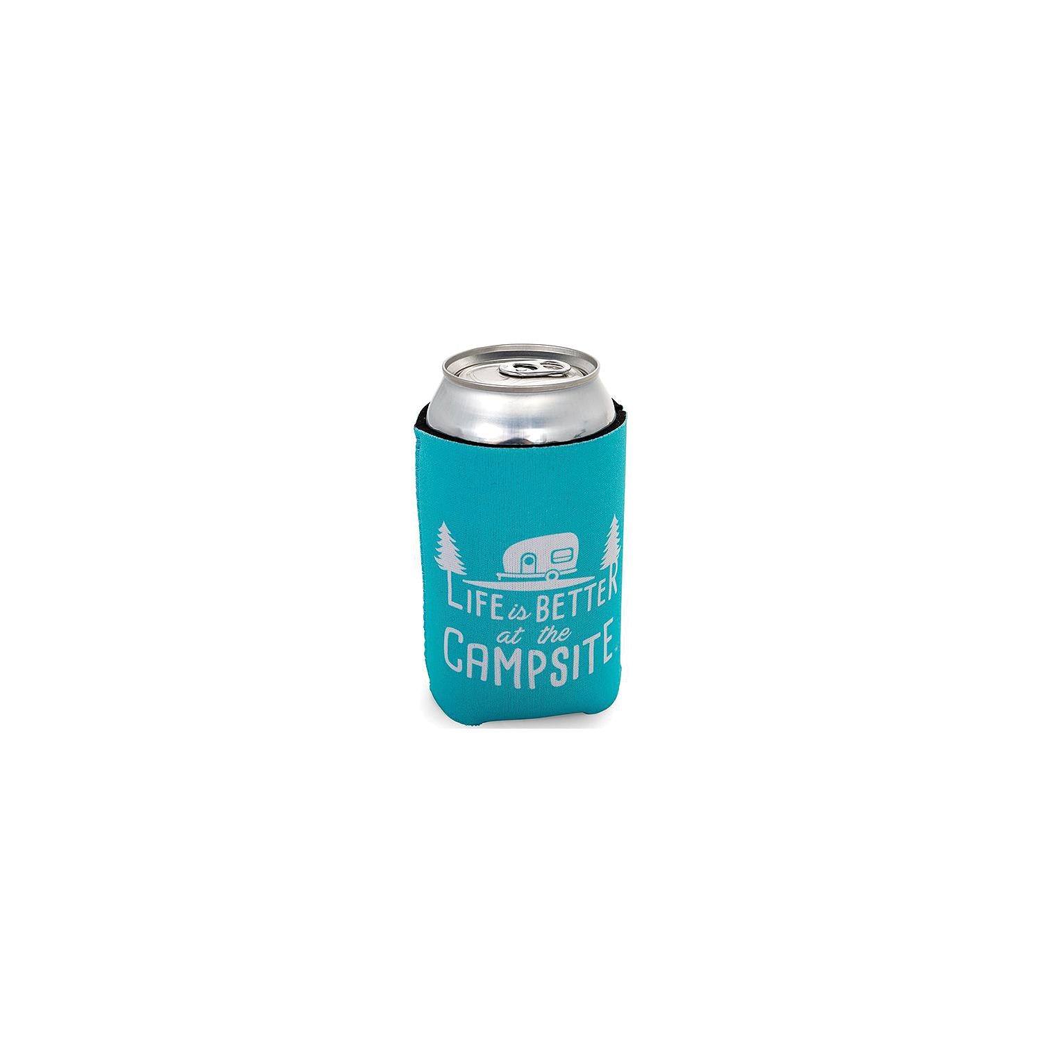 Camco's Life is Better at the Campsite Can Sleeve is teal colored and RV-themed-perfect for RV enthusiasts. It keeps your drink cold while keeping your hand warm and free of condensation. The sleeve is made of soft, resilient neoprene that is easy to grip. For 12 oz. cans. Comes with a limited 1-year warranty.