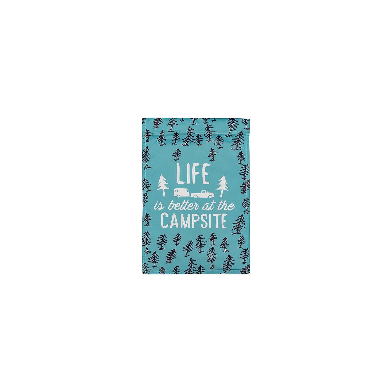 Life is Better at the Campsite Decorative Garden Flag with a unique RV camper design, ideal for RV enthusiasts. Constructed of durable, weatherproof nylon that is great in all seasons.