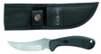 The black Ridgeback Hunter is a Blackie Collins design. This collection is designed for those who prefer to pack light for the outdoors. This fixed blade knife features a sabre concave ground swept skinner blade and a black synthetic textured handle for a sure grip. This durable fixed knife has a full-tang design for added strength and thumb grooves on the back of the blade for improved grip. This knife also includes a lanyard hole for your convenience. The skinner blade is commonly used for skinning purposes or field dressing, making it a must have knife for huntsmen. This blade is constructed with CASE Tru-Sharp stainless steel which is a special high-carbon steel that helps the blades hold an edge longer than conventional steel. It also offers extraordinary blade strength and corrosion resistance. Comes with a ballistic nylon sheath. This fixed blade knife is ideal for hunting, everyday situations or hiking.