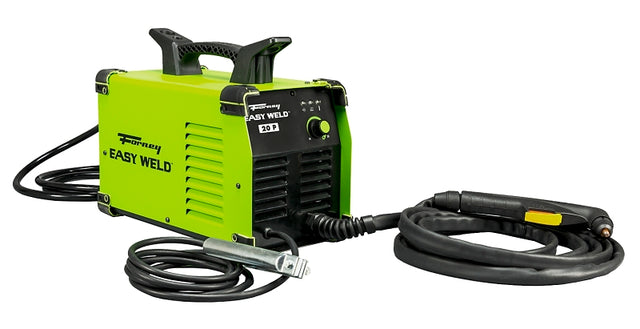 The Forney Easy Weld 20 P plasma cutter is easy to use, portable and generator friendly. Ideal for sheet metal to thin plate cutting and auto body, farm and ranch, HVAC, plumbing and contractor work. Includes 13 ft cutting torch, 8 ft ground clamp, 20 to 15 A adapter, one additional electrode and one additional nozzle. Features integrated air pressure regulator and dryer, drag torch technology and three diagnostic LED lights.
