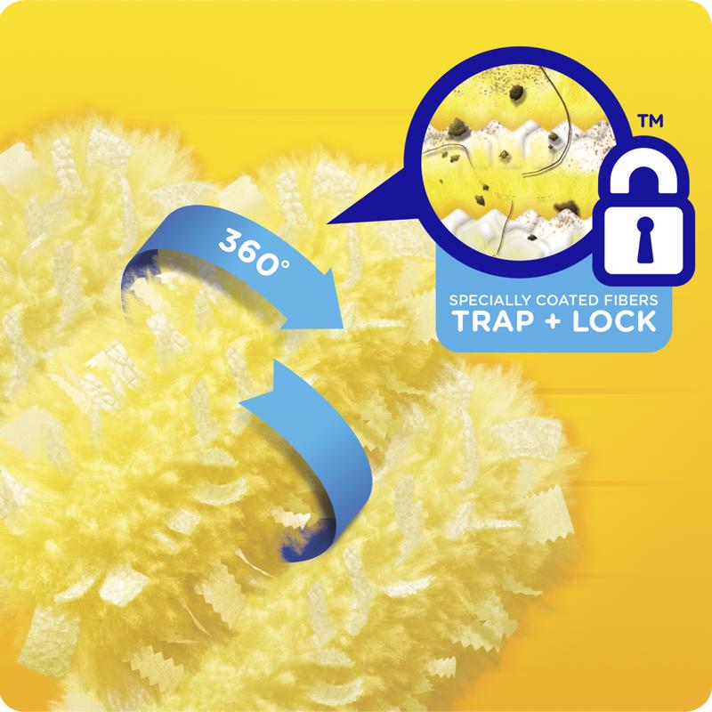 Swiffer Heavy Duty Dusters TRAP + LOCK up to 3x more dust & allergens. 360 degrees of specially coated fibers grab onto dust & don't let go. They are uniquely designed to Trap + Lock dust from every direction. (vs. feather duster, common inanimate allergens from cat and dog dander & dust mite matter)