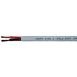 Flat multi conductor marine cable meeting UL & ABYC standards. This bare copper cable offers a unique flame retardant PVC compound (VW-1) and is moisture, abrasion, acid, diesel fuel and oil resistant. Extremely flexible to work with. Stranded copper conductor jacketed with 105°C PVC jacket to form a flat multiconductor cable. Black & red inner conductors meet SAE J1128.
