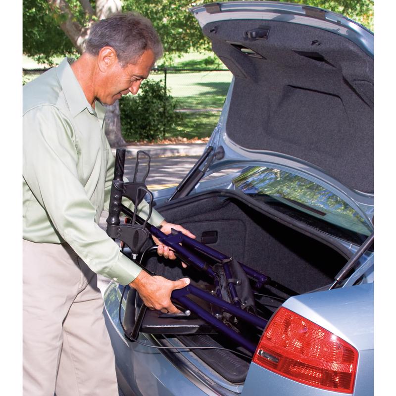 • The aluminum rollator's large wheels provide a smooth glide and make it easy to roll on multiple indoor terrains