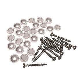 Decorative Screen Panel Fastener Kit is the perfect addition to finish your screen panel project. Each kit comes with twelve #8 1.5 in. stainless steel screws and white colored screw covers. Covers install in a snap and are color matched to the decorative screen panel to leave a unified look.