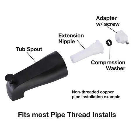 Danco Tub Spout Universal 6.0 in. L X 3.07 in. W X 3.07 in. H Black Metal 1 pc