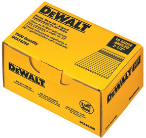 DEWALT Finish Nail, Collation Type: Glue, Collation Angle: 20 deg, Head Diameter: 0.113 in, Head Type: Brad, Point Type: Chisel, Shank Type: Smooth, Material Gauge: 16, 1/16 in Dia, 2-1/2 in L, Steel, Galvanized, Suitable for: DC618K Finish Nailer